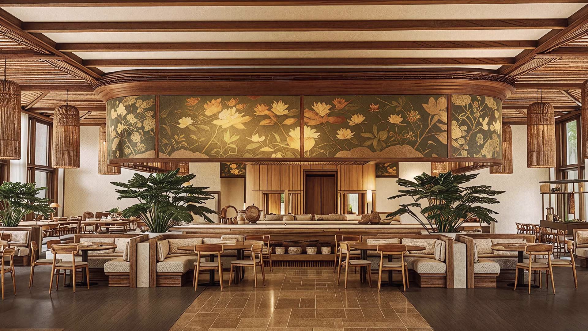nestles discreetly in the landscape, offering wellness and leisure within semi-open courts, water features, and shaded play areas. Circulation is choreographed as a journey of discovery: arrivals build anticipation through winding drives, while pathways lead guests deeper into tranquil zones, shifting from the sociable heart to private retreats.