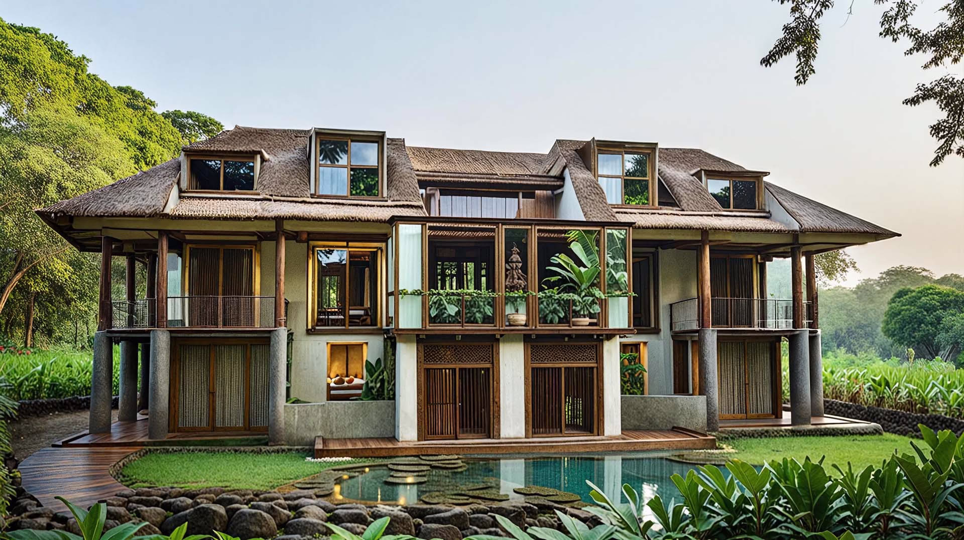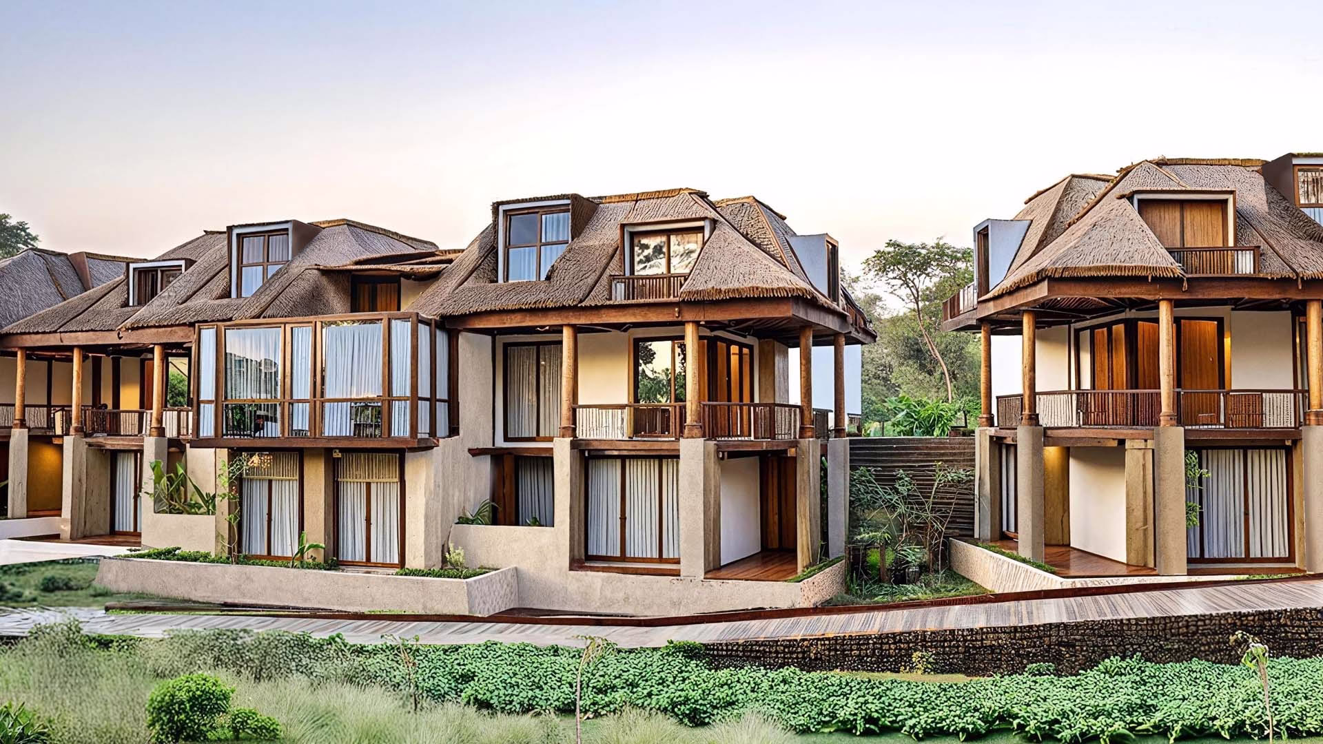 The main block functions as a contemporary haveli, housing lobby, dining, and event spaces. Its courtyards, terraces, and infinity pool orchestrate dramatic views of the canopy beyond. Radiating outward, studio and suite villas are dispersed along meandering paths shaded by existing trees. Each villa, oriented for privacy and framed vistas, blurs inside and outside through verandahs and decks, immersing guests in the sights and sounds of the forest.