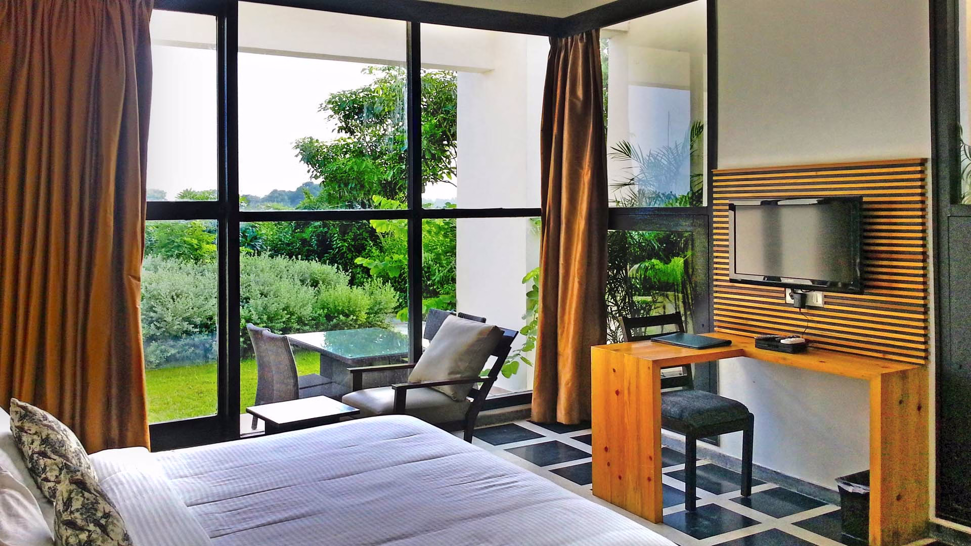 The villas and suites all have buffer spaces in the form of porches that become a part of the surrounding landscape carefully created by species that not only invite the local birds, but also tease all the senses right from vision, taste, smell and touch. Throughout the resort, the use of local stone masonry, reclaimed wood carpentry and metal works are all reflections of the local craftsmanship and materials of the surrounding regions that maintain a sensitive bond of sustainability by keeping the old professions alive. Apart from above a feature of growing and maintaining organic gardens through conducted workshops within the resort teaches the city dwellers the concept of sustainability and self-sufficiency minimizing the waste.
