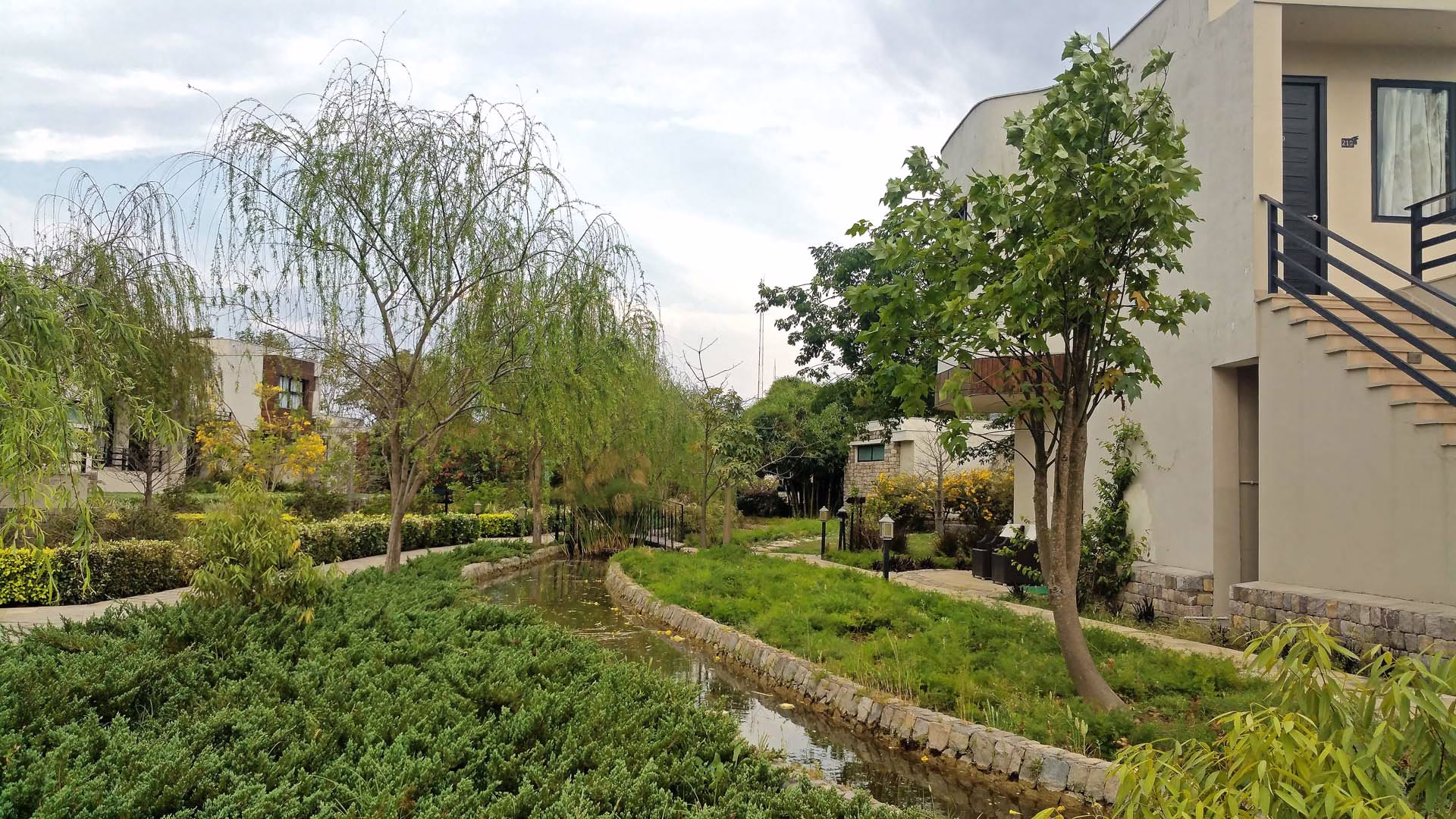 Right from the Reception, exhibition gallery meant for nature lover photographers, Residential accommodations of various kinds (Forest view suites, Villas, luxury tents), a gourmet restaurant (that serves food using fresh organic ingredients grown on the resort), Swimming pool, recreational areas and spa are all arranged along a water rivulet that runs like a spine throughout the length of the site with multiple sit-out spaces and porches. The water rivulet itself is created by channelizing a natural stream of water that runs through the site, unobstructed yet fresh.