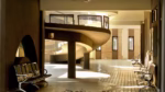 Inside, grey concrete, brushed steel handrails and restrained lighting set off the warmth of the stone shell. Long, column-free teaching floors encourage flexible layouts, and glazed partitions maintain visual continuity across departments—an architectural metaphor for the “fluidity of ideas” that defines modern education.