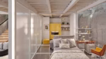 The program stacks purposefully: a basement dance studio for daily training; a ground-floor home office with an independent entry; and flexible family floors above that balance shared life and privacy. A shifting column grid frees larger living areas, services are consolidated for efficiency, and a lift with a daylighted stair ensures universal access for elders and children alike. A planted roof terrace caps the home as an everyday retreat.