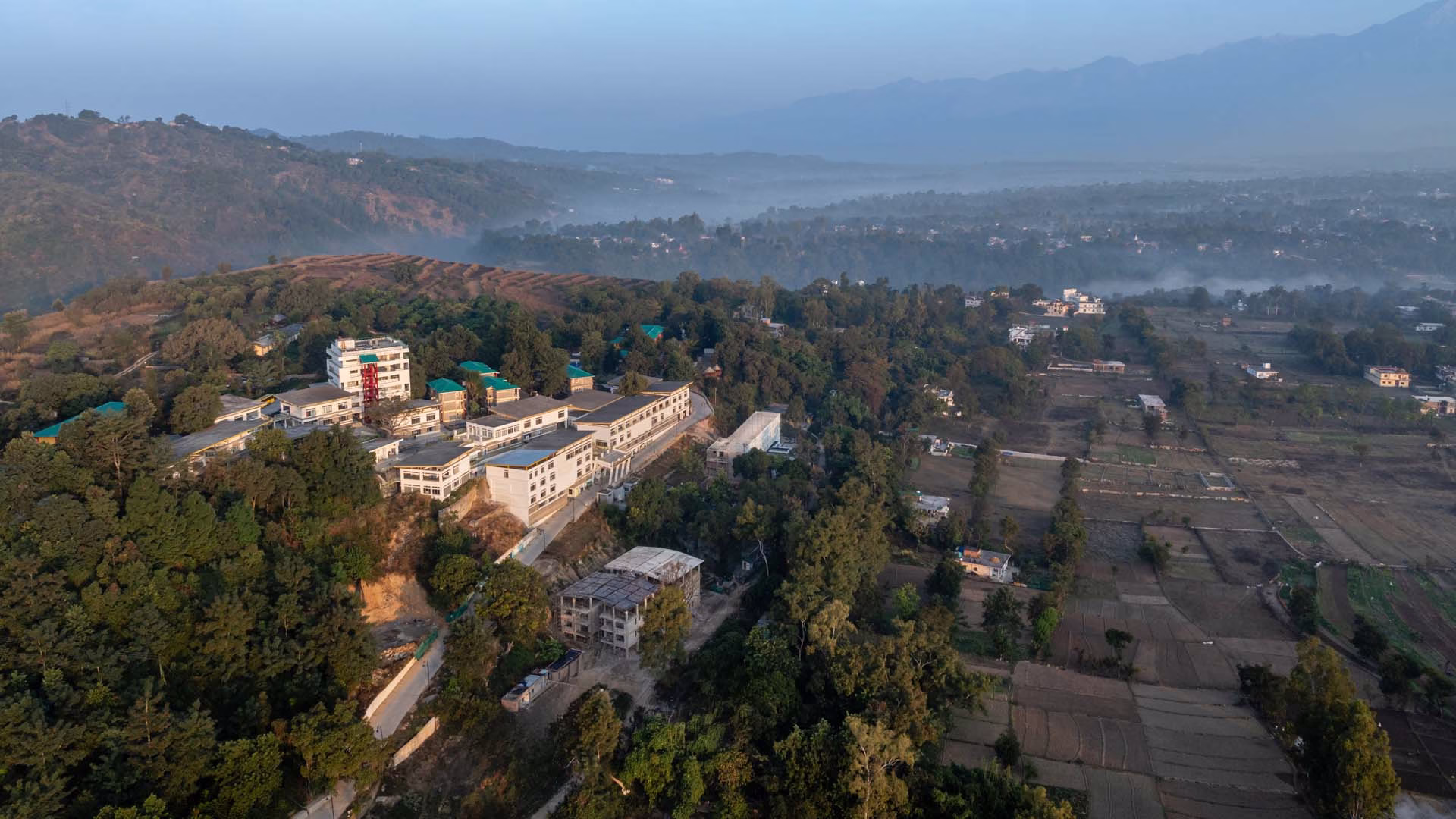 Perched on Kangra’s terraced hilltop beneath the Dhauladhar range, the National Institute of Fashion Technology campus embodies a vision where architecture, culture and ecology interlace seamlessly. Conceived in 2009 as the winning entry in a national competition, the 14-hectare master plan adopts the vernacular logic of agricultural hill villages to create a zero-discharge “green” campus that respects every contour, tree and natural watercourse on site.