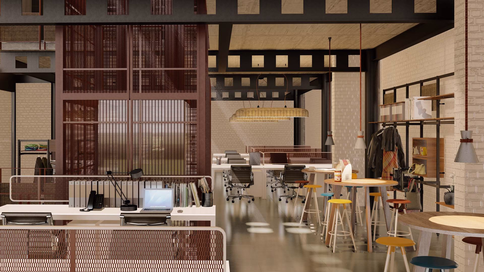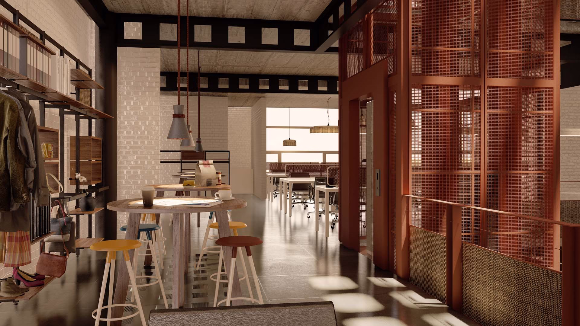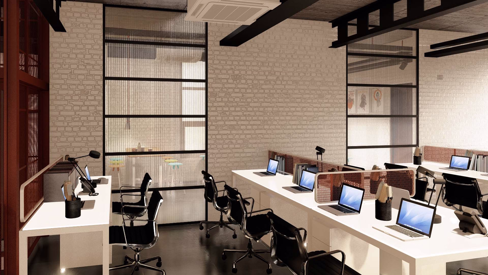 An office for Ogaan Publications and Ogaan Fashions (Elle Décor Design Magazine and Elle Fashion ). The office, spanning across 4 floors creates a very stylized and eclectic mix of beautiful spaces with light and the design language reminiscent of the 70’s Modernist movement with accents of furniture and accessory pieces. The controlled color pallete with minimal inflection of ‘Mondrian’ colors make a statement in design , art movements, eras and art and design post the industrial revolution.