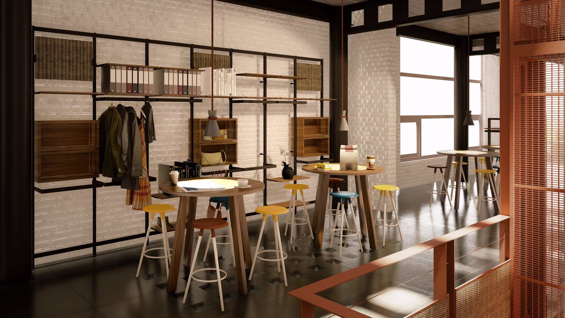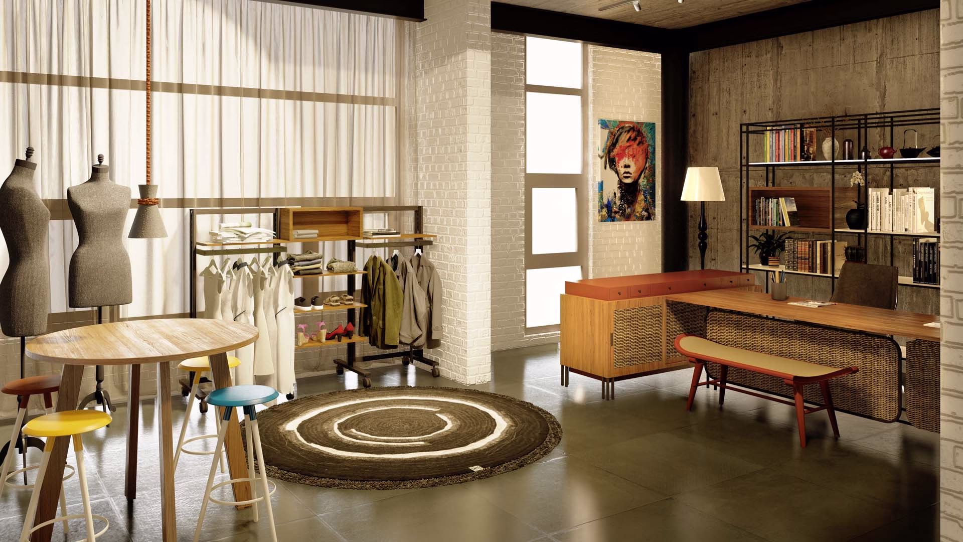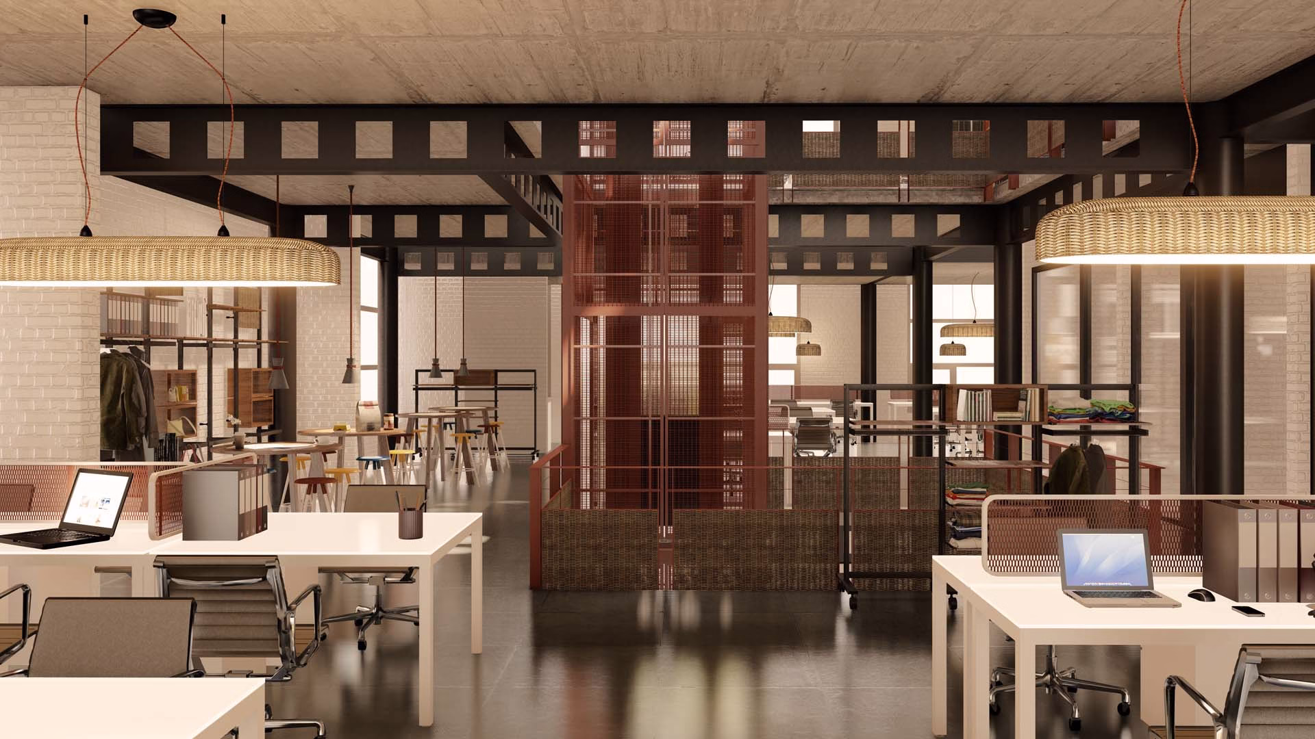 An office for Ogaan Publications and Ogaan Fashions (Elle Décor Design Magazine and Elle Fashion ). The office, spanning across 4 floors creates a very stylized and eclectic mix of beautiful spaces with light and the design language reminiscent of the 70’s Modernist movement with accents of furniture and accessory pieces. The controlled color pallete with minimal inflection of ‘Mondrian’ colors make a statement in design , art movements, eras and art and design post the industrial revolution.