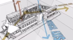 The design unfolds in three conceptual layers. First, the alignment with Lutyens’ triangular grid established a strong axial order – blocks arranged to shade each other and form a spatial rhythm. Second, the planning drew from temple layouts, creating a journey from public to private zones, echoing a hierarchy of access and power. Third, symbolic elements like stepwells, ramps, jaalis, and gateways referenced Indian traditions while aiding climate responsiveness.