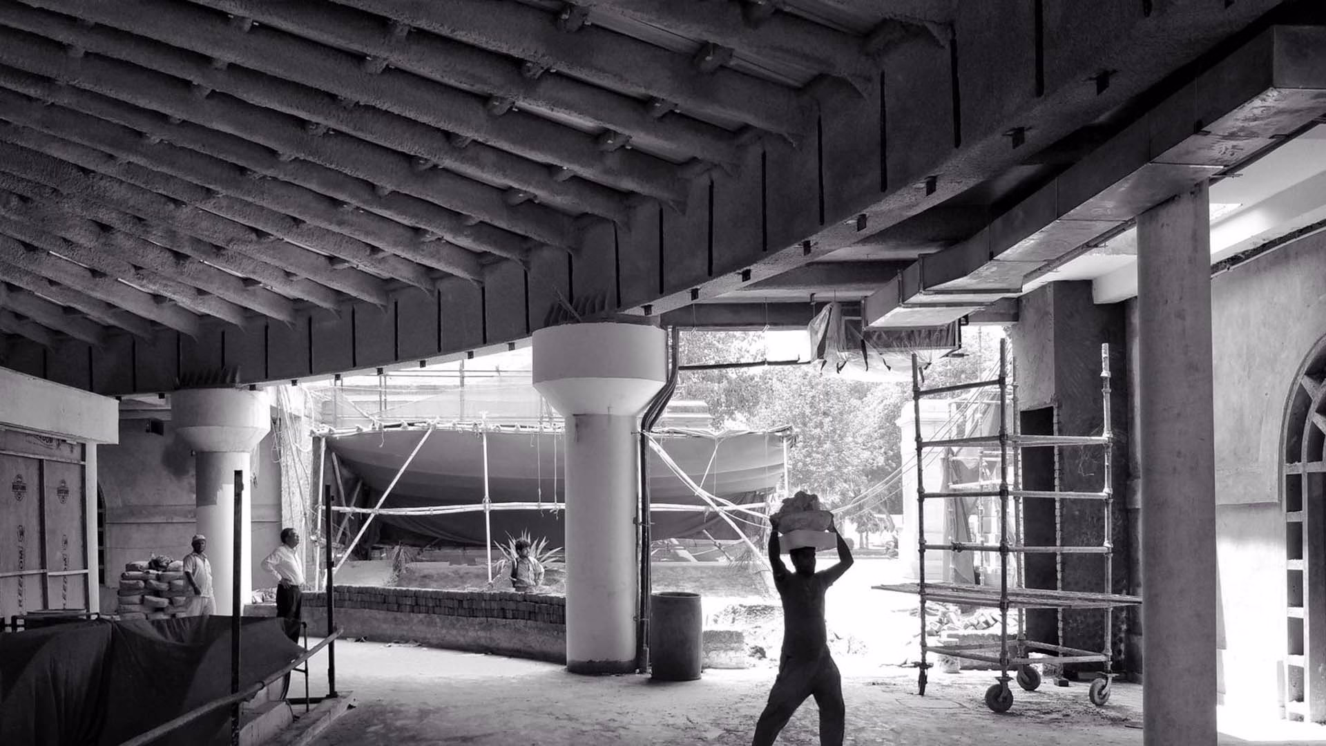The project adapts three disused service structures—the 1920s Stables, Garages and Clock-Tower—into a seamless narrative loop. Phase I restored the brick-vaulted Stables, converting every horse stall into intimate showcases for state gifts and presidential memorabilia. Phase II excavated a three-storey basement beneath the old Garages, creating column-free halls for vintage limousines, immersive freedom-struggle dioramas and a Constitutional Gallery. The stabilised Clock Tower now acts as a daylight shaft and orientation node, tying the heritage shells to the new underground volumes and the dome-topped lobby above.